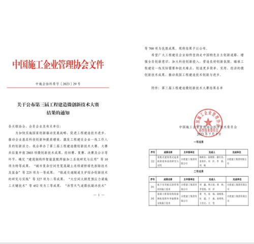 合肥建工榮獲中施企協第三屆微創新技術大賽三項成果獎項