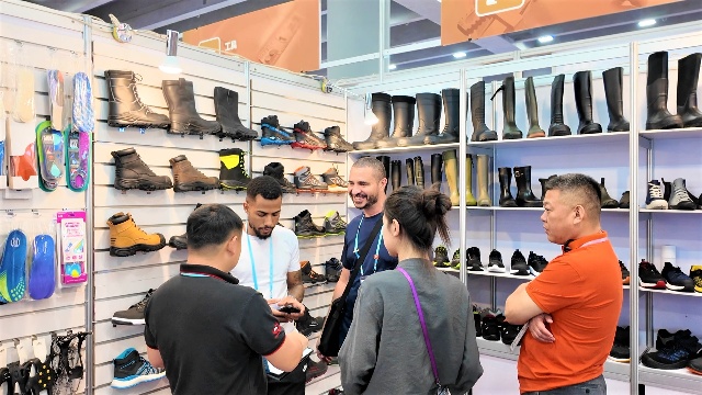 小家電區(qū)域里,安糧的電風(fēng)扇憑借智能控溫、多檔風(fēng)速調(diào)節(jié)等功能有效兼顧了節(jié)能與舒適體驗(yàn),多樣化的外觀也能輕松適配各種家居風(fēng)格。鞋類品展區(qū)的勞保工具鞋憑借耐磨防滑、支撐性好的優(yōu)點(diǎn)吸引了建筑、物流等行業(yè)客戶的咨詢。
